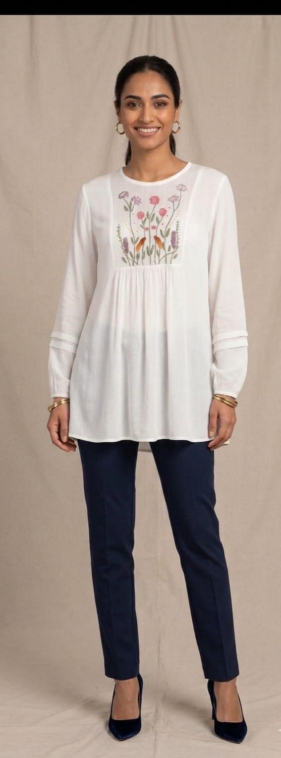 Made from soft and breathable cotton voile fabric, this blouse offers exceptional comfort, making it ideal for everyday wear or special occasions. The lightweight material ensures a relaxed fit, while the detailed embroidery adds a touch of sophistication and cultural charm.
