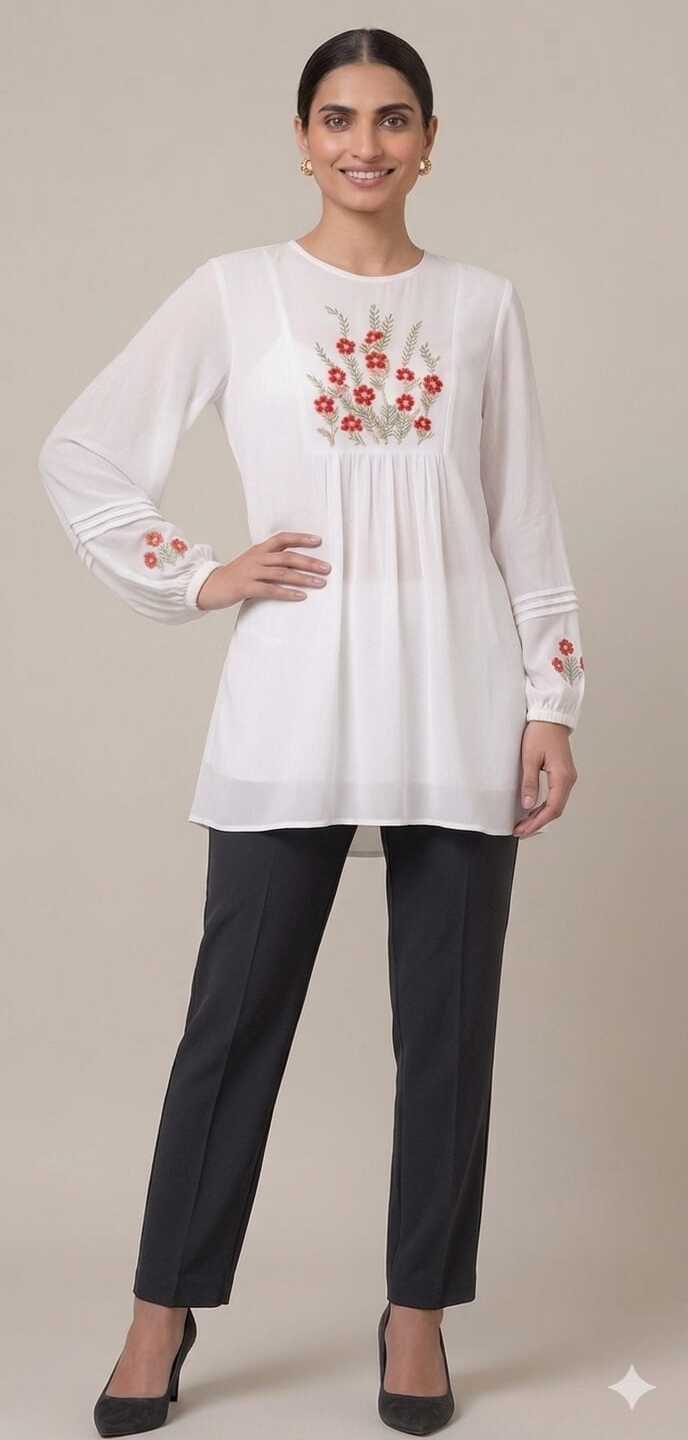 Made from soft and breathable cotton voile fabric, this blouse offers exceptional comfort, making it ideal for everyday wear or special occasions. The lightweight material ensures a relaxed fit, while the detailed embroidery adds a touch of sophistication and cultural charm.