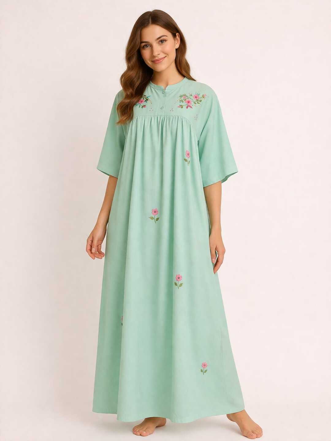 Add a touch of timeless charm to your nightwear collection with this elegant light green cotton nightgown, inspired by classic vintage designs. Made from soft, breathable cotton, it ensures comfort throughout the night while keeping a graceful and relaxed look.